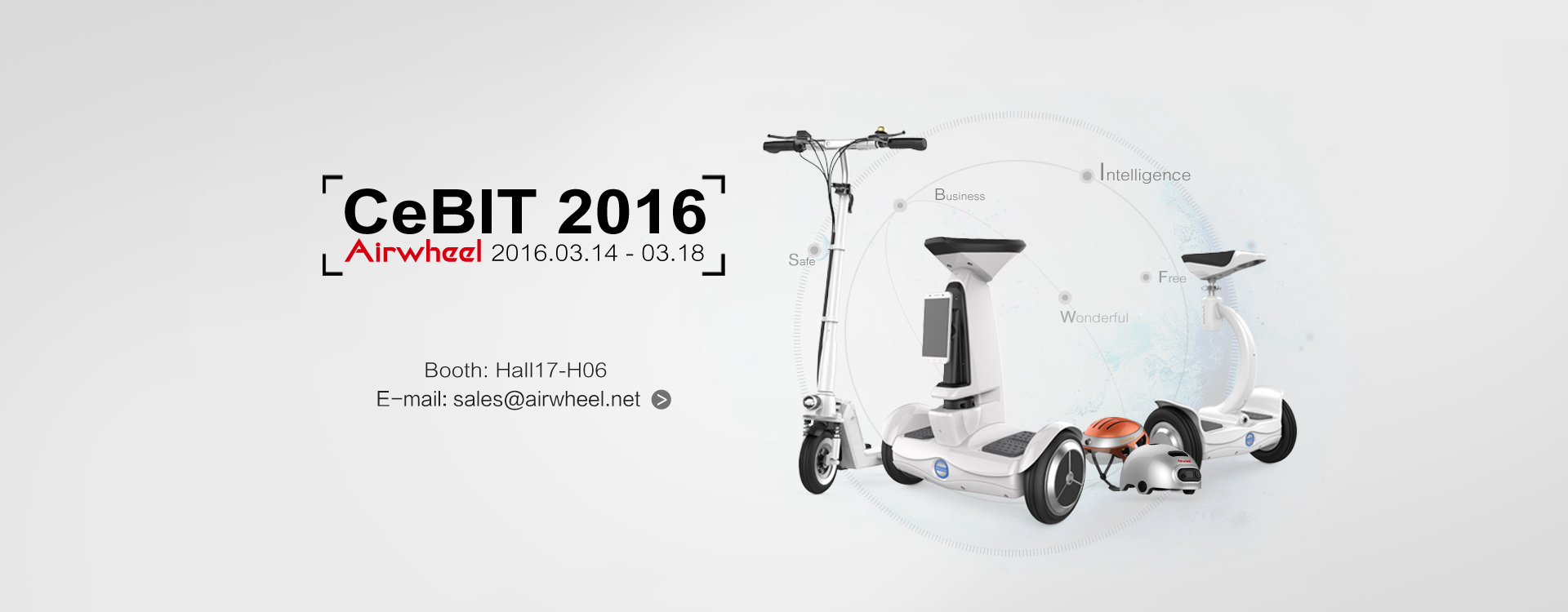 Airwheel is in pursuit of fashion, vogue and charm. The user's ride experience is the central to their design and R & D. Their improvements and revamps pivot on the feedback from customers. At CeBIT 2016, Airwheel self-balancing electric scooter is displaying their innovations for the first time in Hall 17-H06 with 36 square meters from 14 - 18 March. The CeBIT is held each year on the Hanover fairground, the world's largest fairground, in Hanover, Germany.【More】